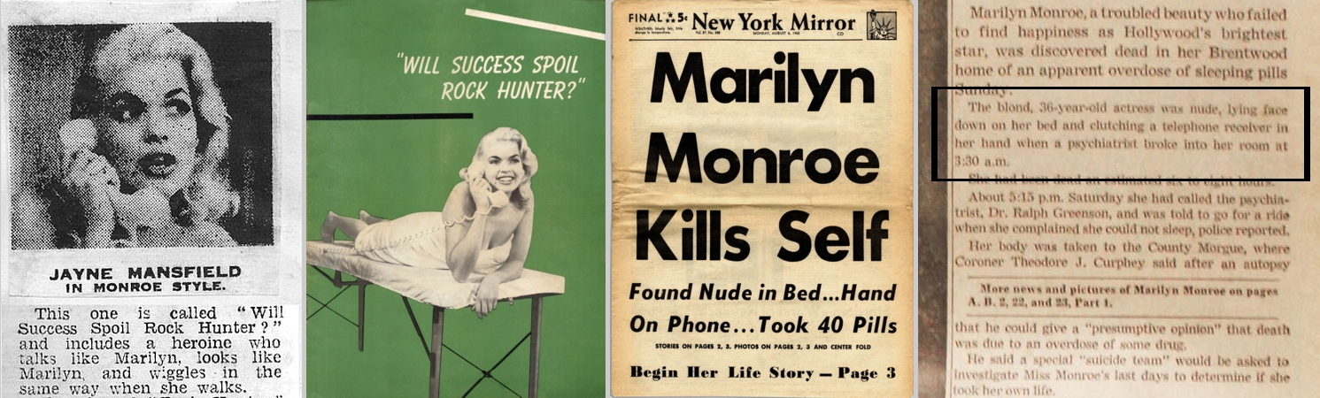 terminated, Jayne Mansfield won a leading role - spoofing Marilyn Monroe - in