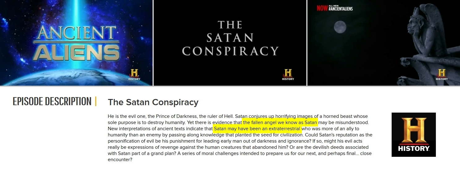 THE SATAN CONSPIRACY is a 2013 episode of the documentary series ANCIENT ALIENS