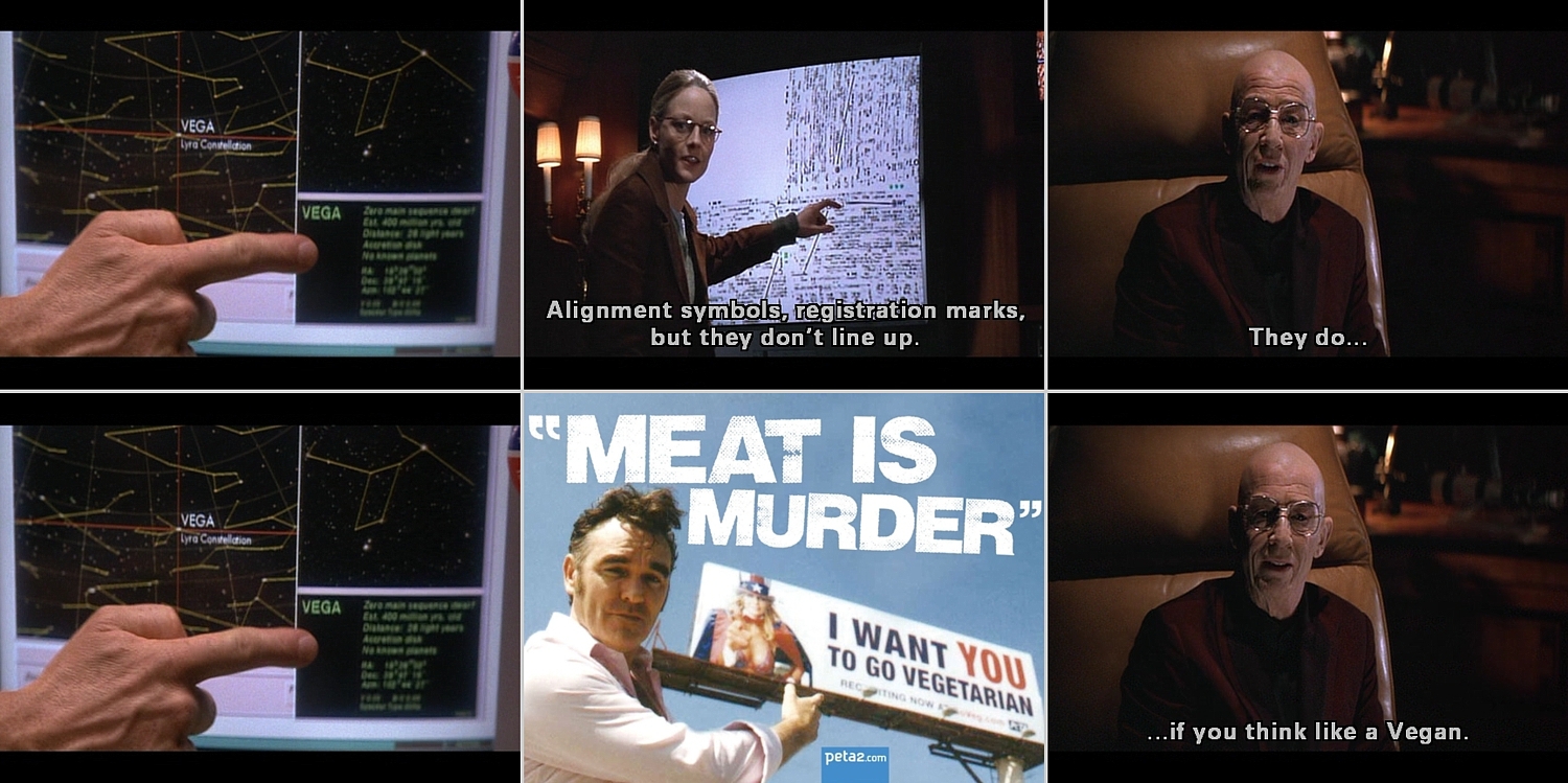 hero is instructed that the ET message can only be interpreted, "if you think like a Vegan."