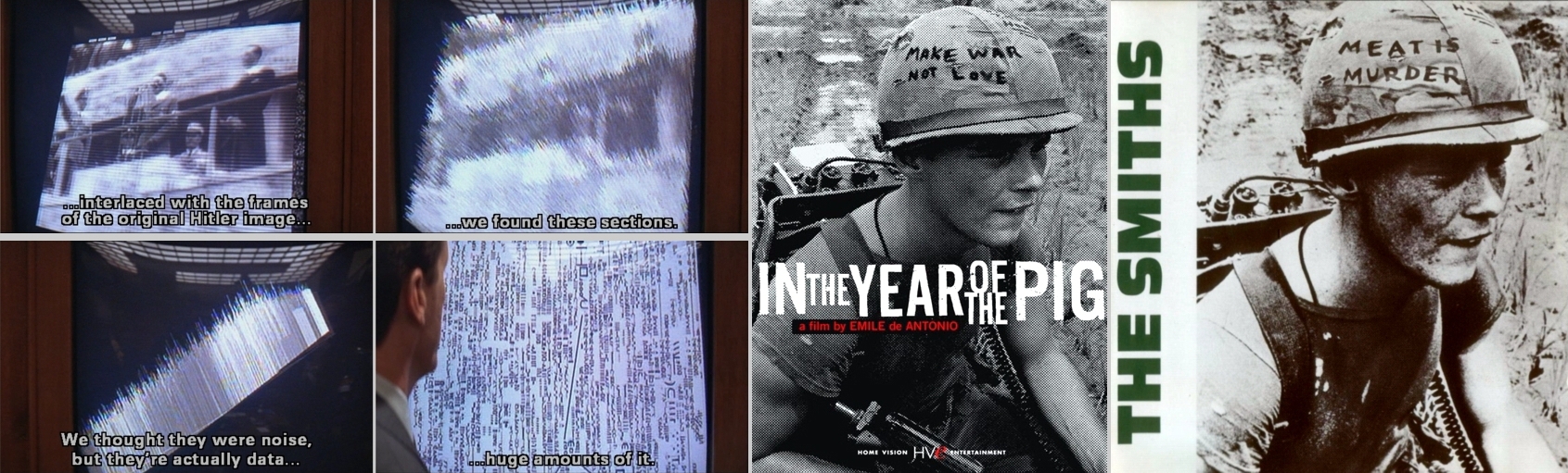 IS MURDER" is inserted into an image from the film IN THE YEAR OF THE PIG). ...