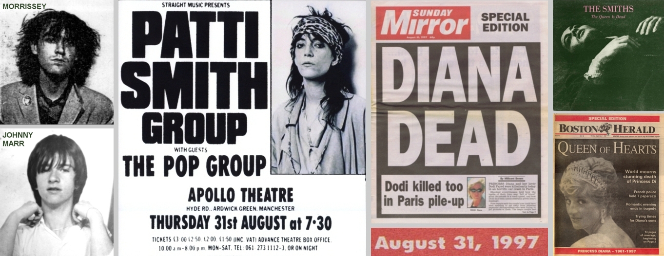 Morrissey met Marr at a Patti Smith concert, Princess Diana dies.