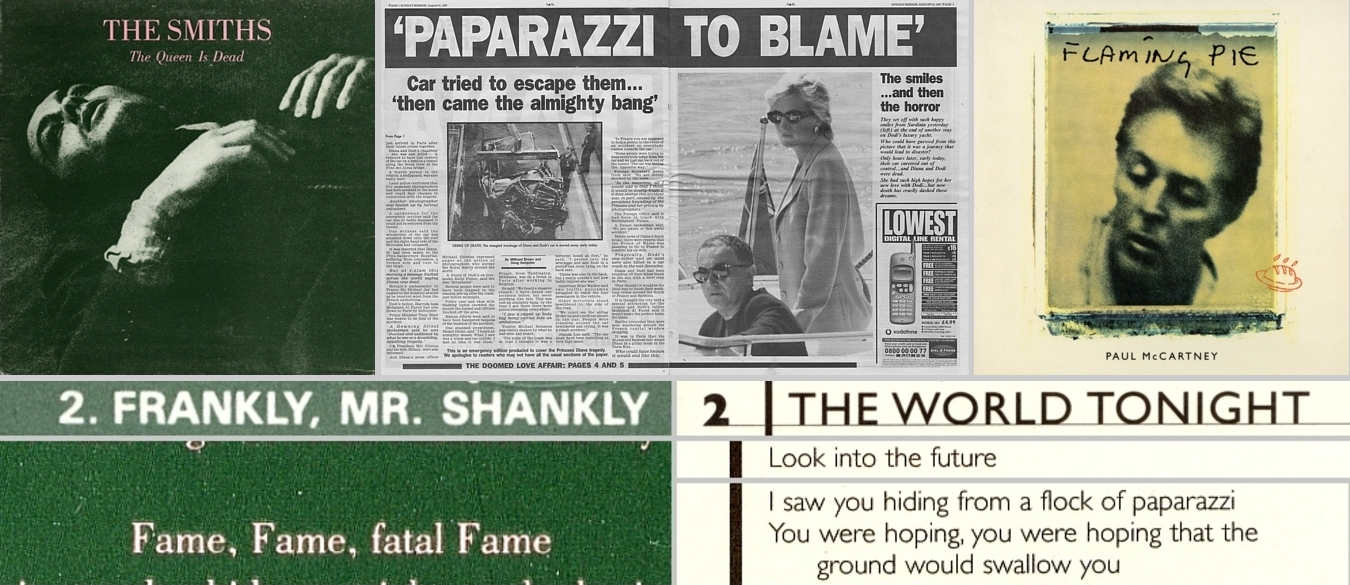 Fame, fatal Fame." The 2nd song on FLAMING PIE refers to "hiding from a