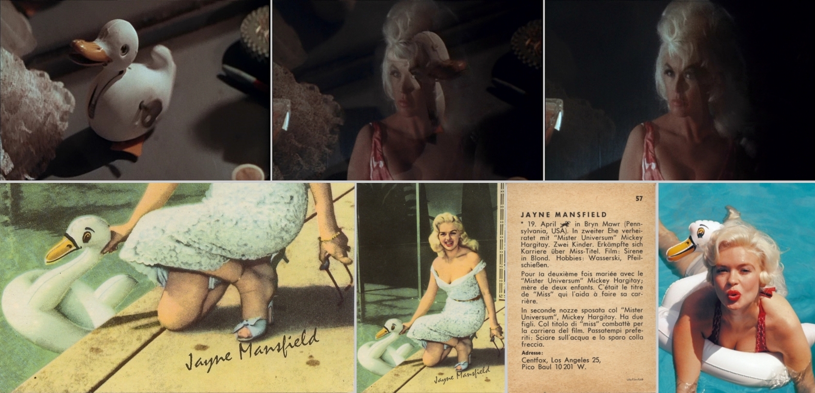 swan on the vintage trading card (57) where Diana Dors is identified as Jayne