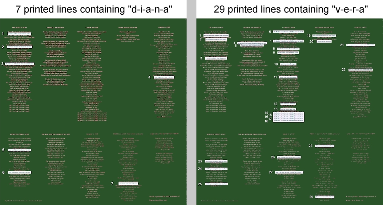 lines that contain the interrupted spelling of "d-i-a-n-a"