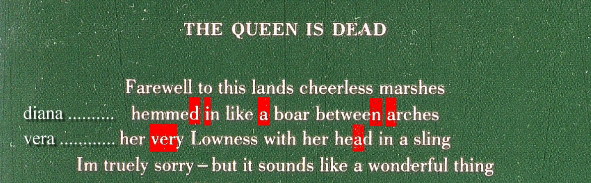 THE QUEEN IS DEAD - Locating "d-i-a-n-a" in the Lyrics