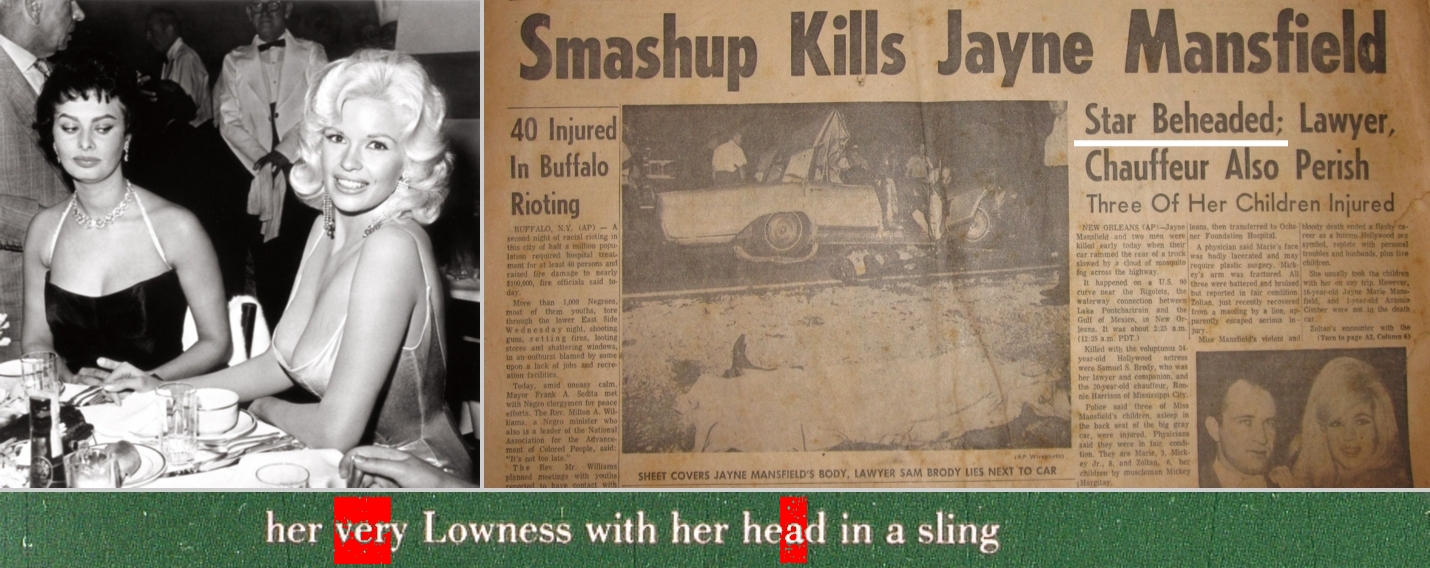 'Jayne Mansfield had her head cut off in an automobile accident!' "