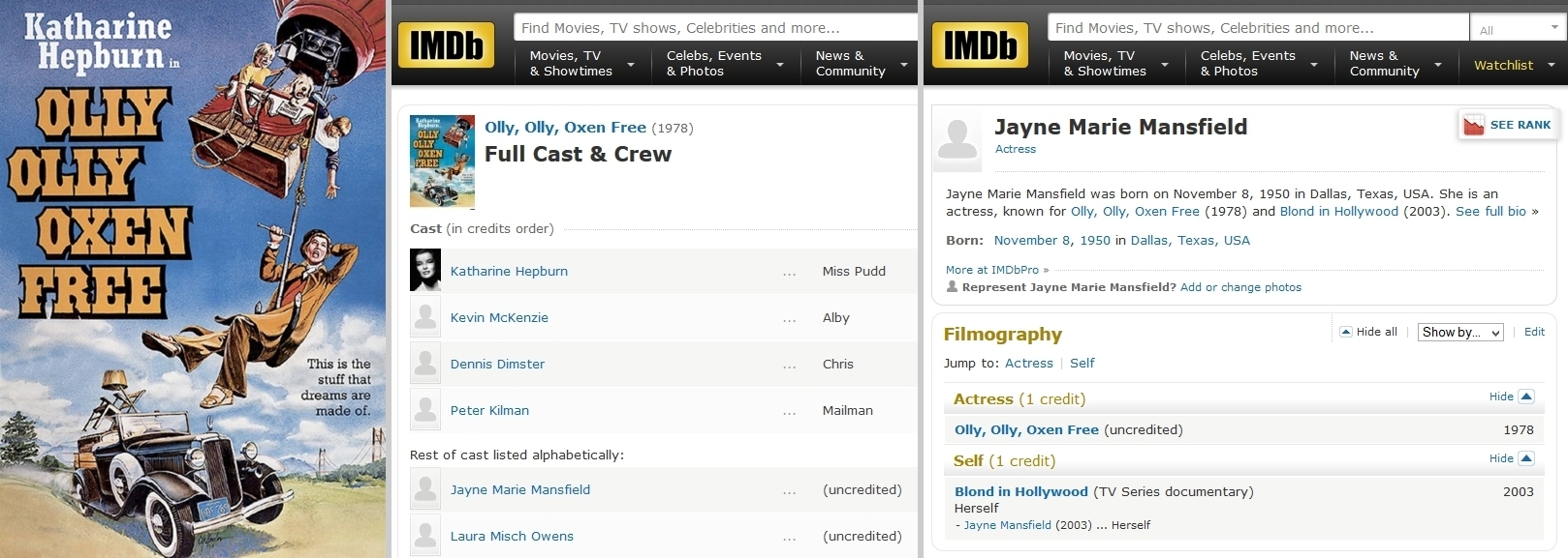 FREE, the only film with Jayne Mansfield "Junior" whose birthday is